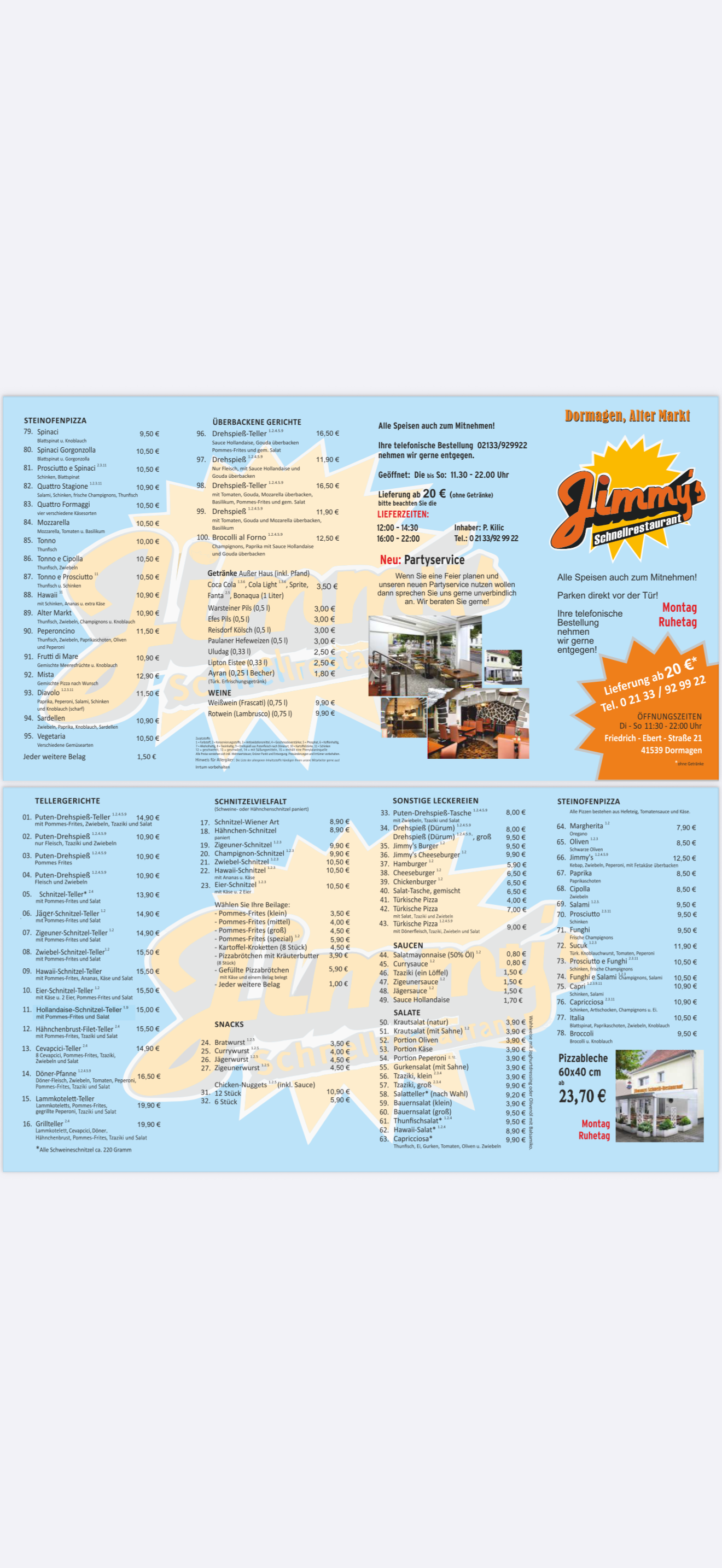 ANRUFEN 02133929922Jimmys Schnellrestaurant in Dormagen Friedrich Ebert Str 21 Lieferung ab 20€ ohne Getränke